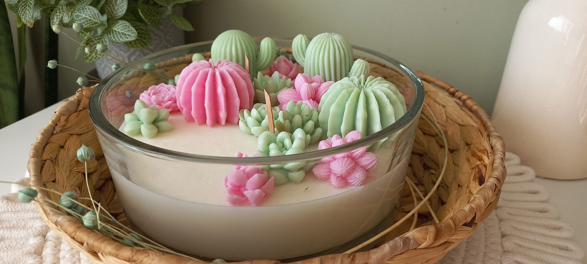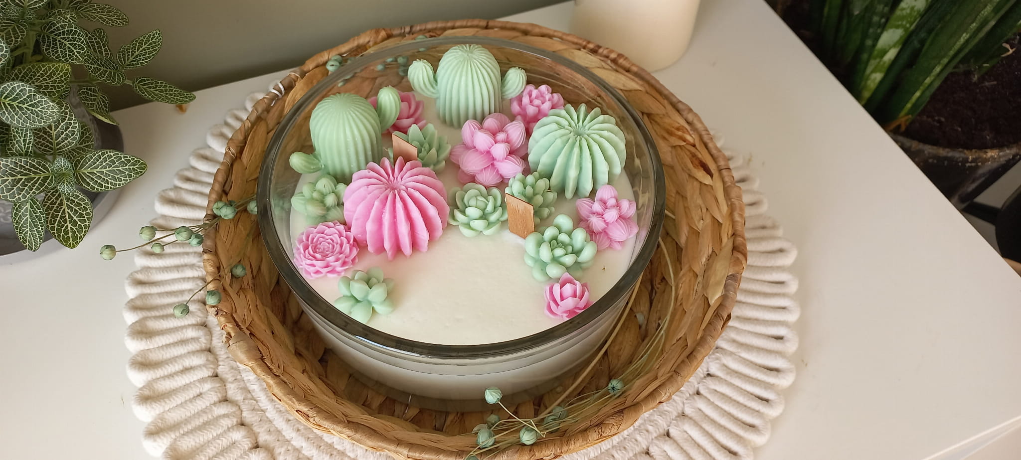 Świeca sojowa z kaktusami będzie cudowną dekoracją a także wyjątkowym prezentem.