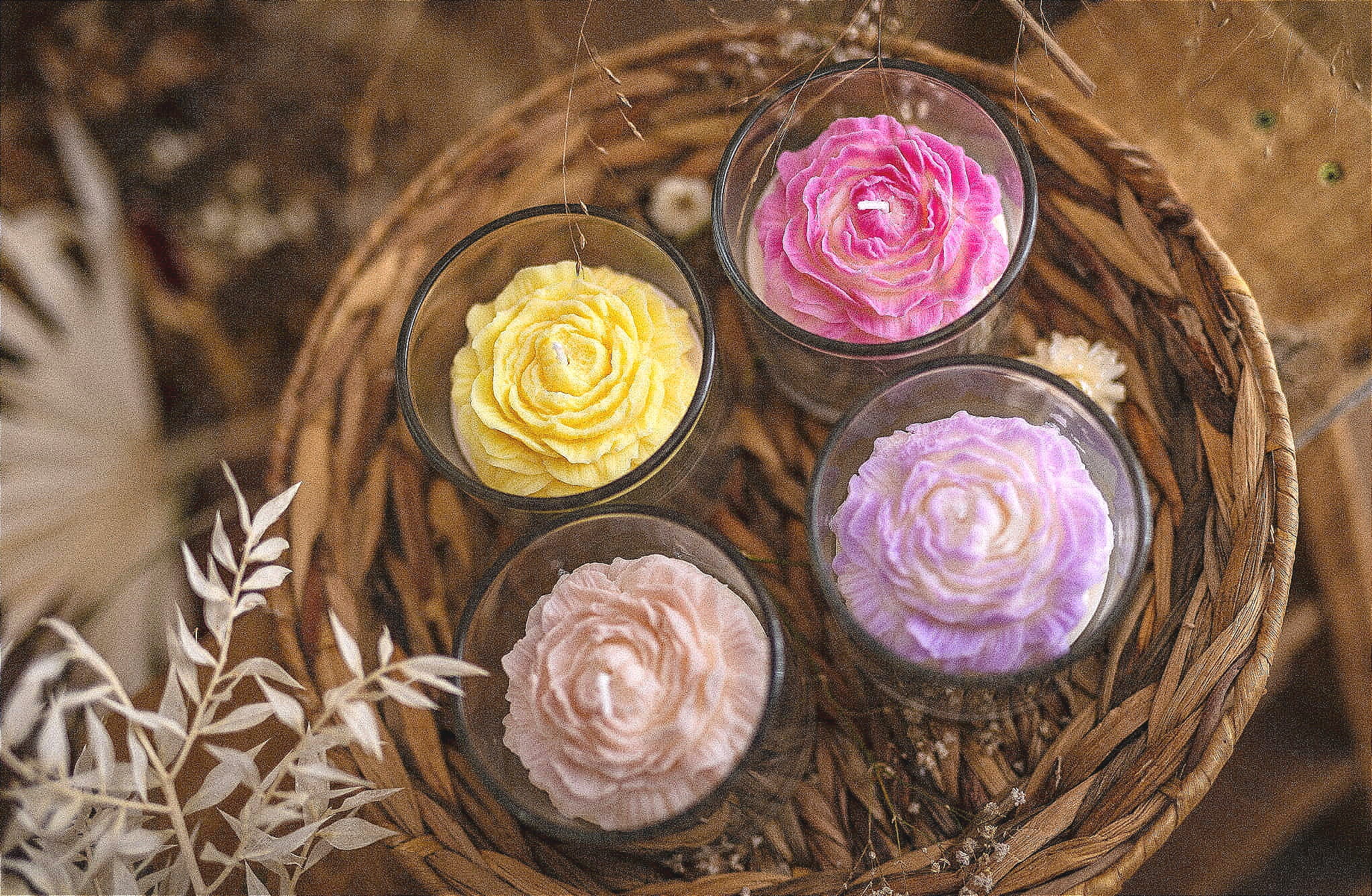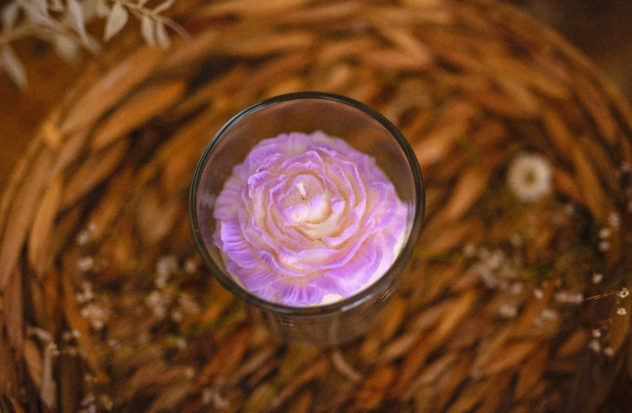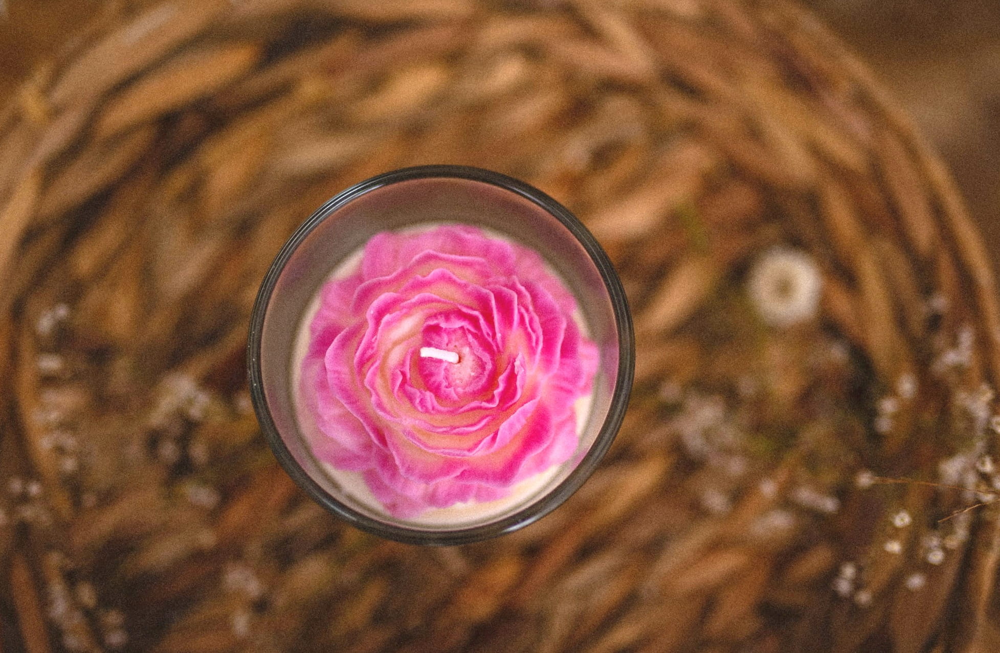 Świeca sojowa ozdobiona kwiatami będzie cudowną dekoracją każdego wnętrza. Idealnie sprawdzi się na prezent dla ukochanej osoby.