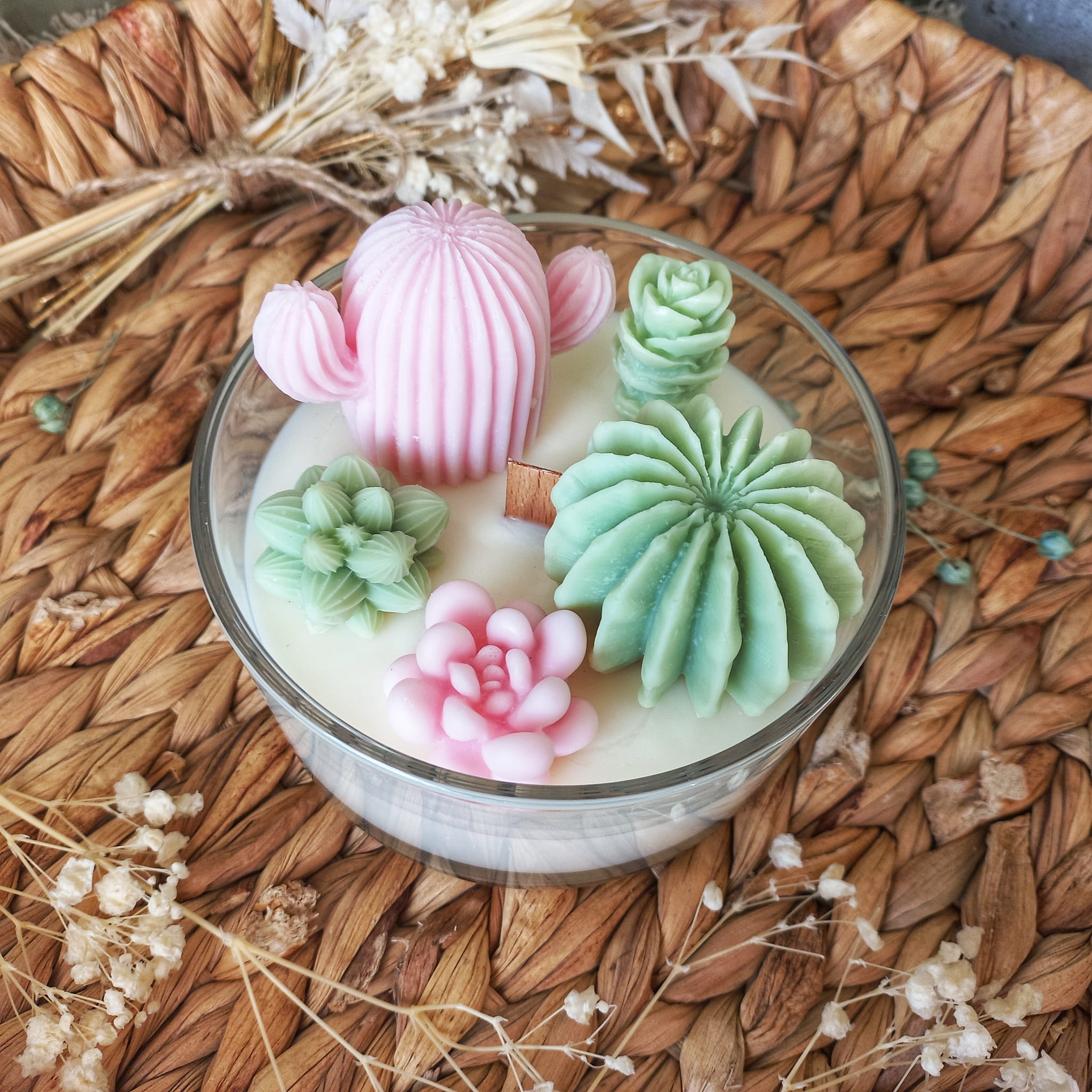 Świeca sojowa z kaktusami będzie cudowną dekoracją każdego wnętrza. Idealnie sprawdzi się na prezent dla ukochanej osoby.