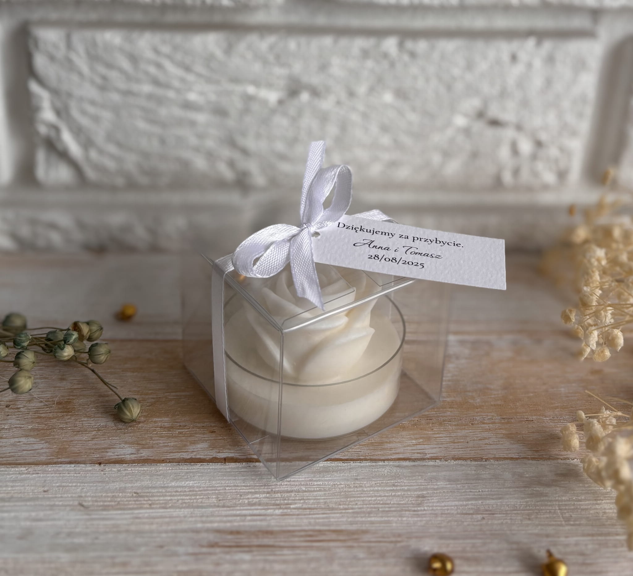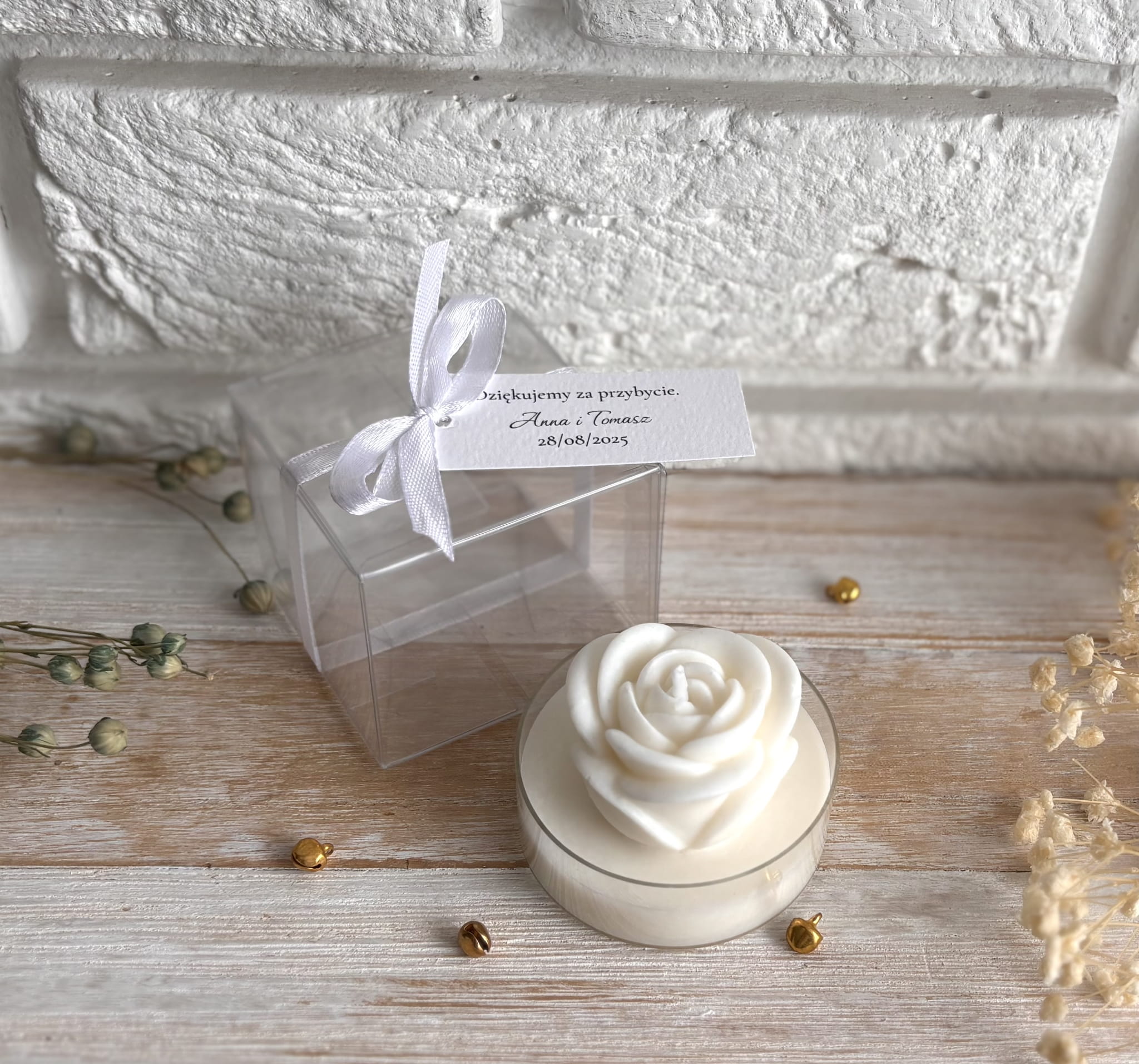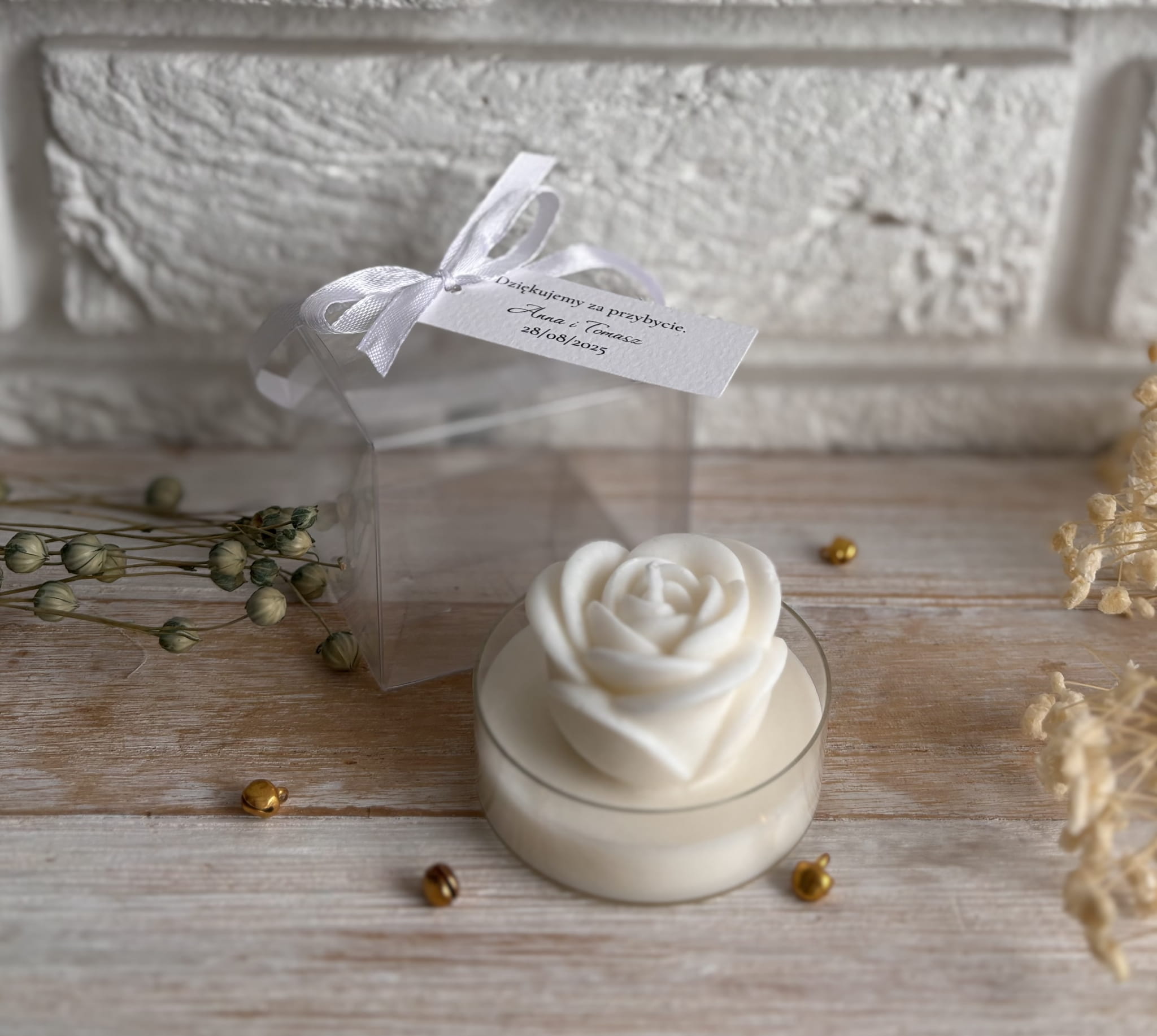 Podziękowanie dla gości – świeca sojowa z różą