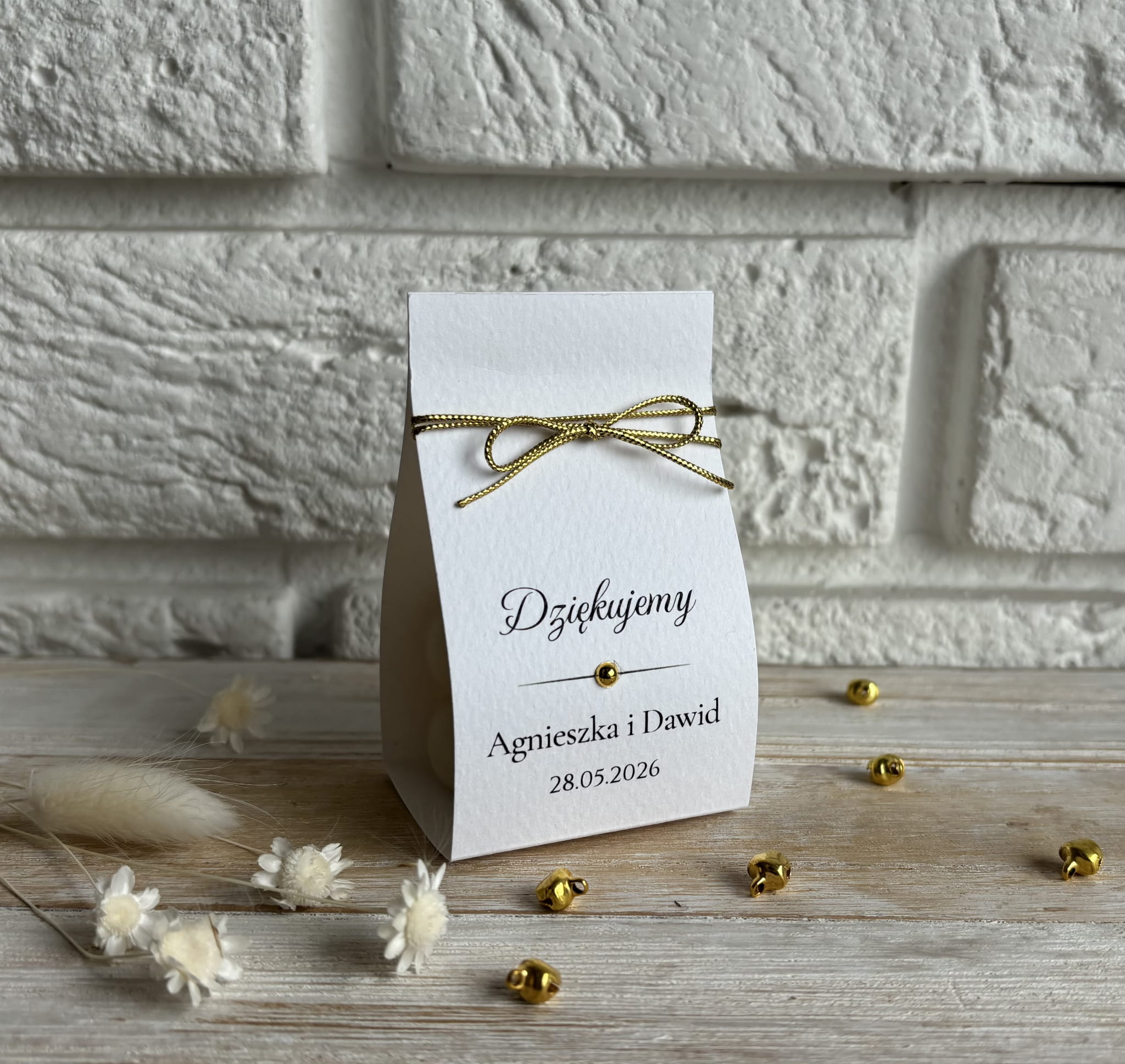 Ręcznie wykonana z naturalnego wosku sojowego, świeca zachwyca wyjątkowym kształtem – subtelne bańki nadają jej nowoczesny, a zarazem uroczy wygląd. Każda świeca zapakowana w ozdobne opakowanie i opatrzona personalizowaną etykietą z imionami, datą lub krótkim podziękowaniem.