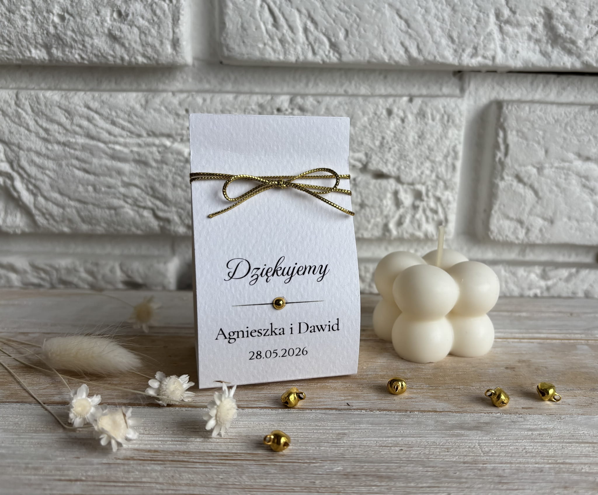 Podziękowanie dla gości ze złotą kokardką - świeca Bublle