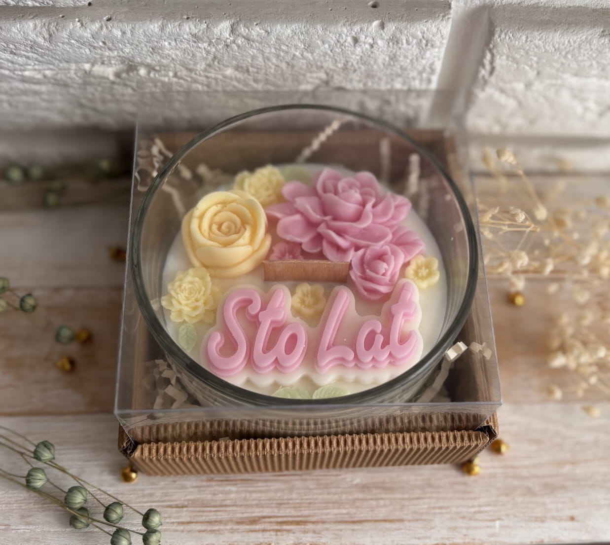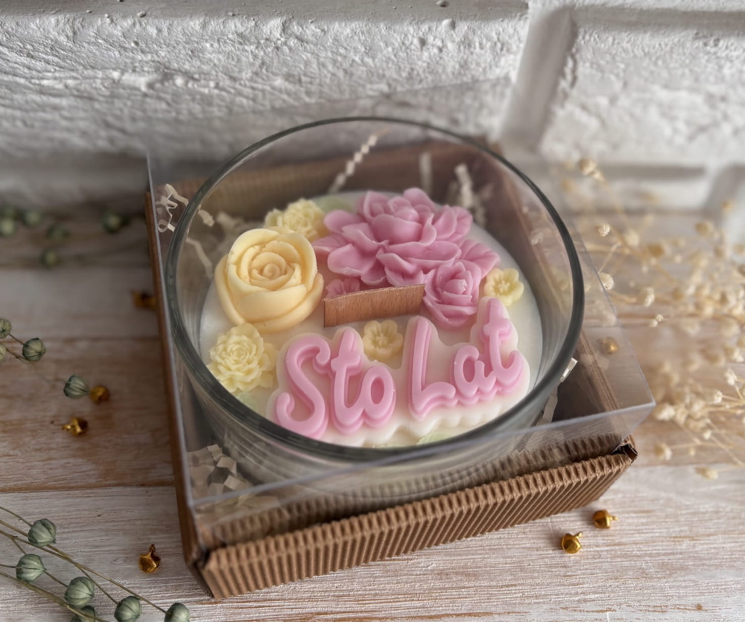 Pudełko z szybką wykonane z tektury falistej dopasowane do świecy o średnicy 11 cm. Idealnie sprawdzi się na prezent.