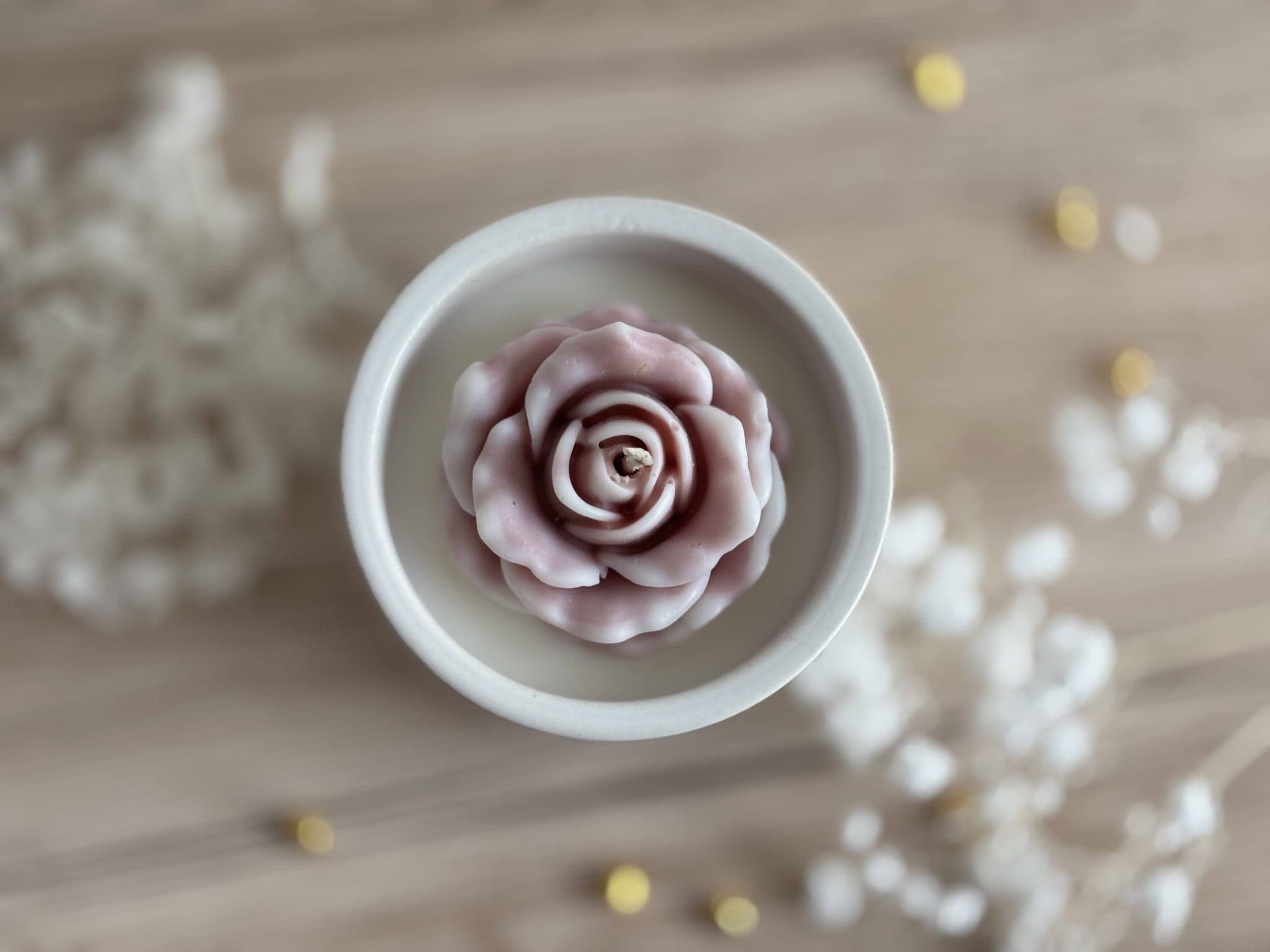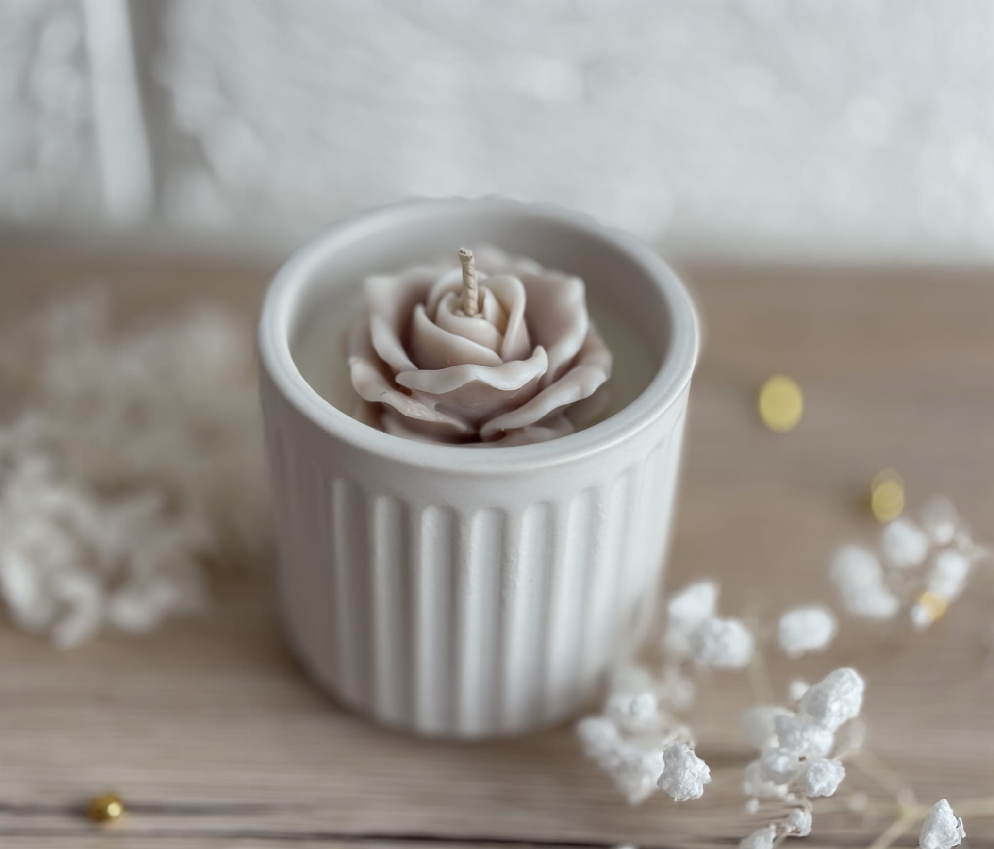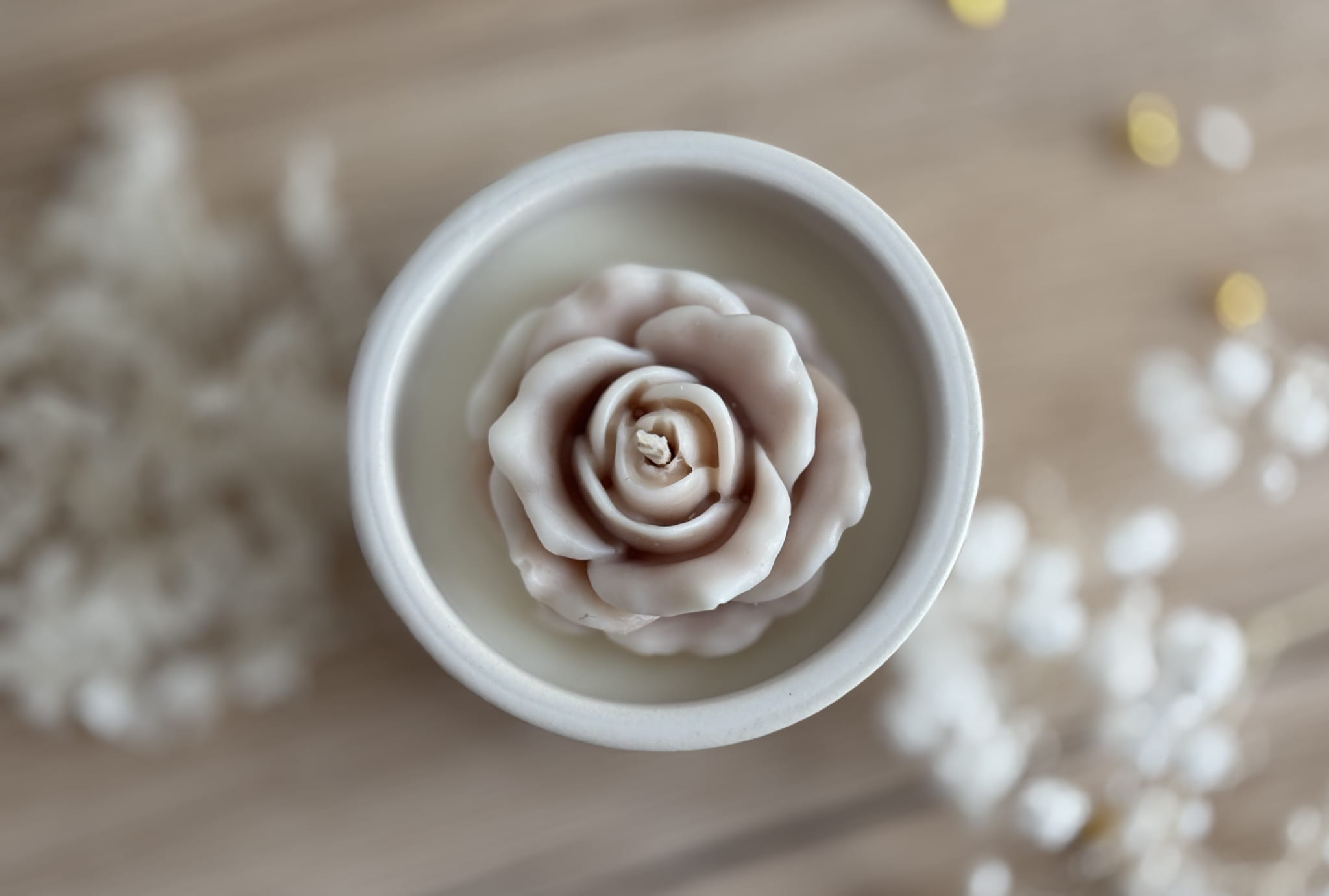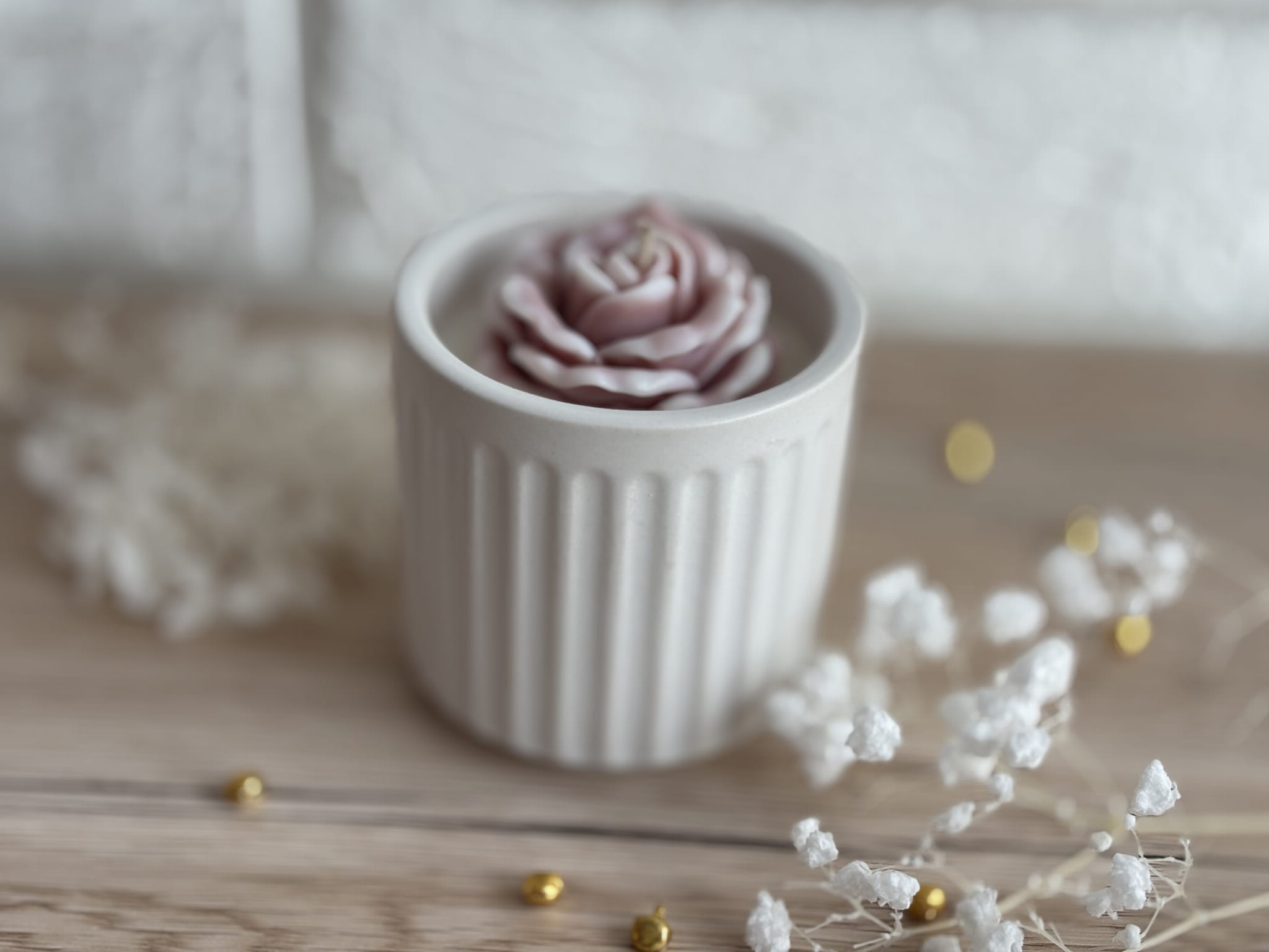 Świeca sojowa w ceramice z różą – Kaszmir i Róża
