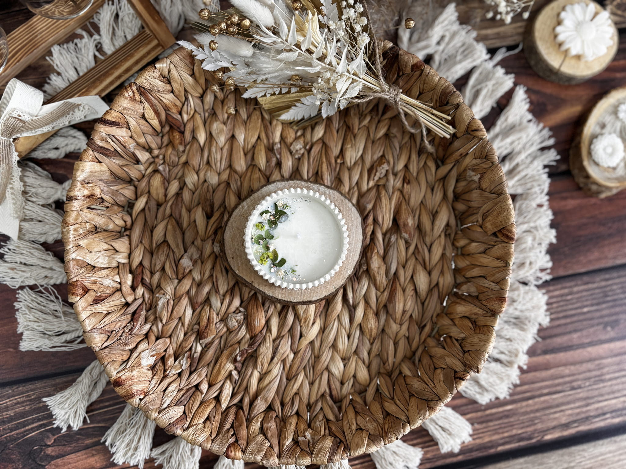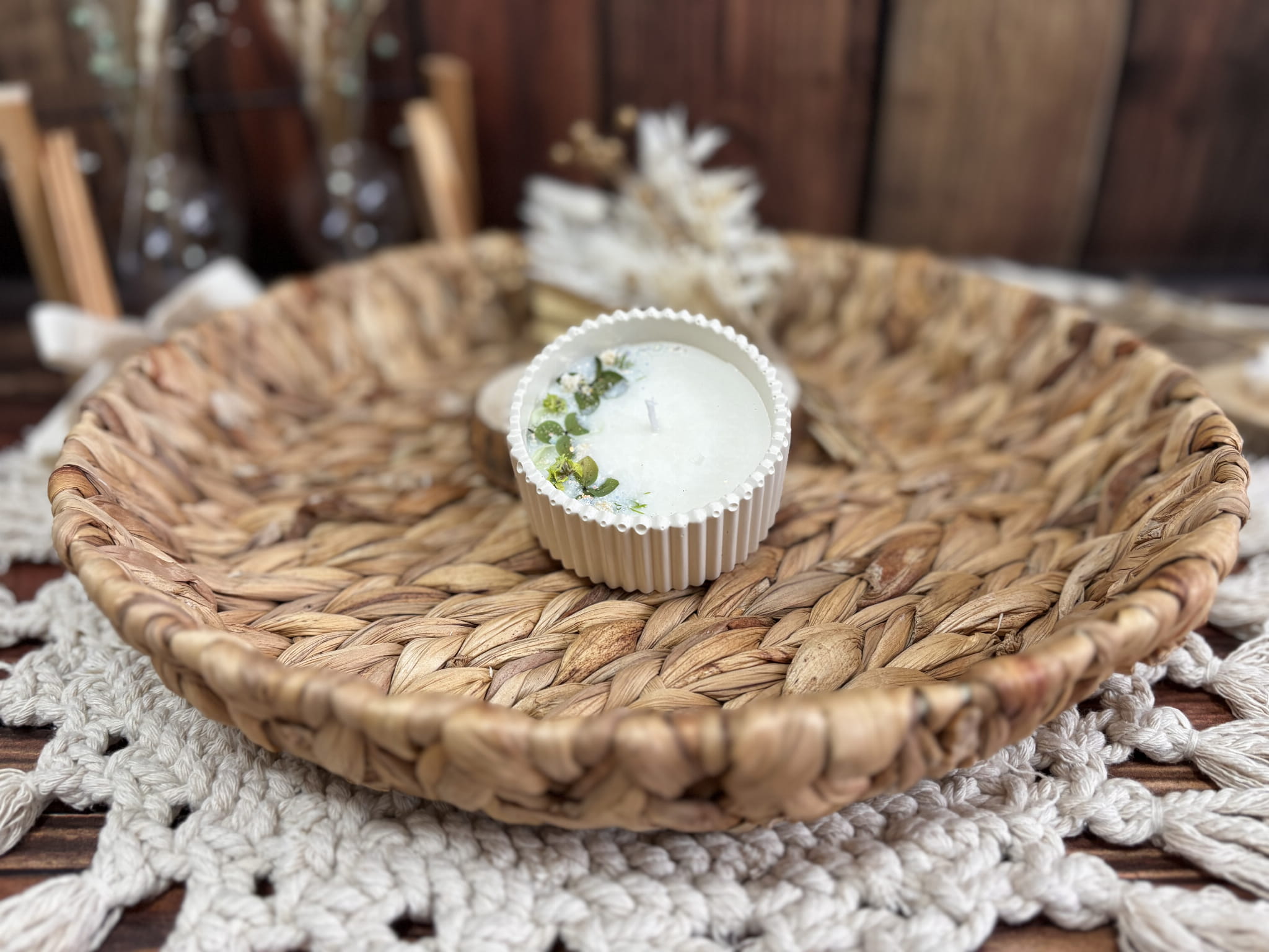 Ręczne wytwarzana świeca sojowa oznacza, że każda świeca jest indywidualnie odlewana i ozdabiana.