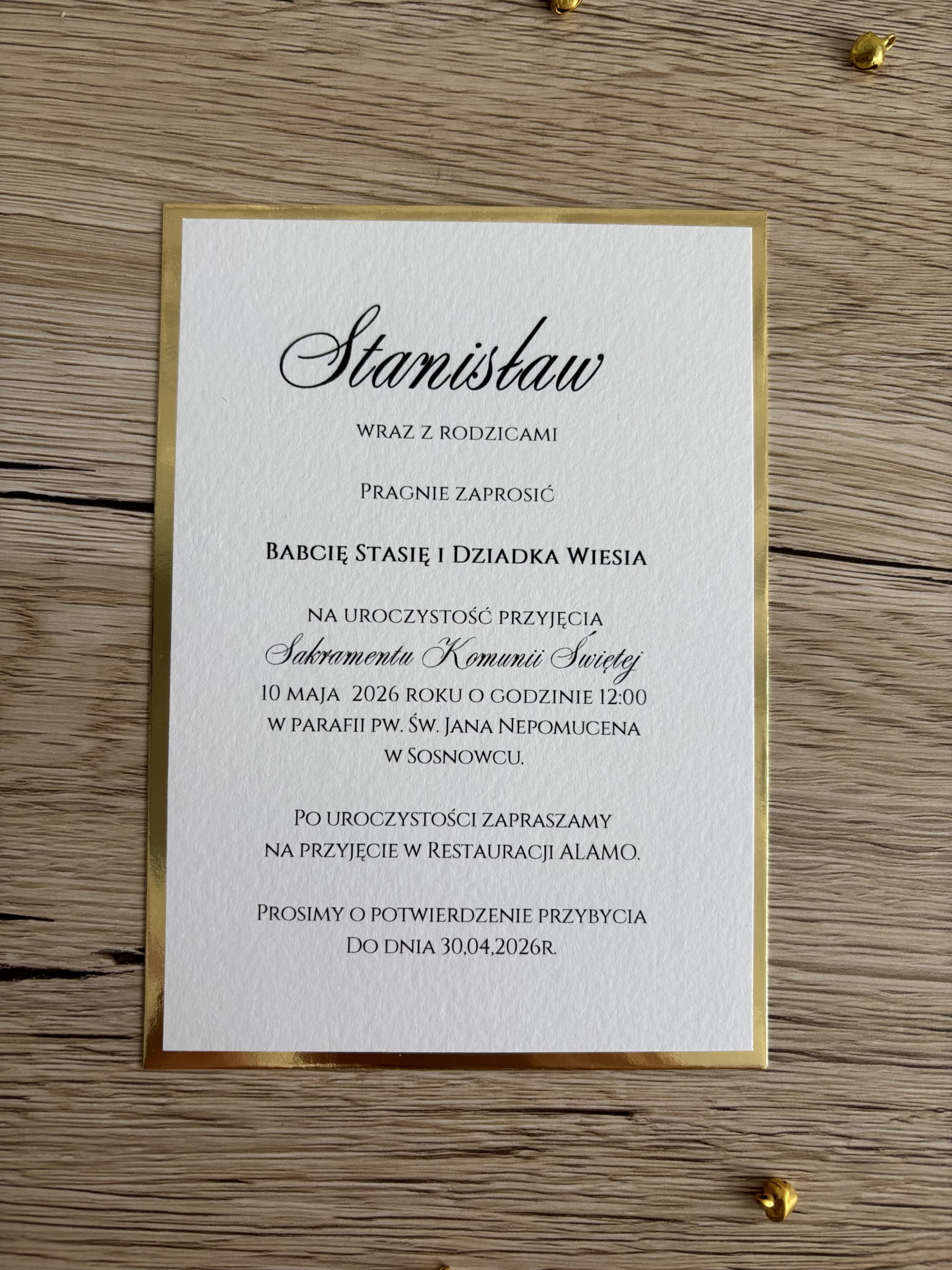 Minimalne zamówienie to 5 sztuk. Nie wykonujemy pojedynczych zaproszeń.