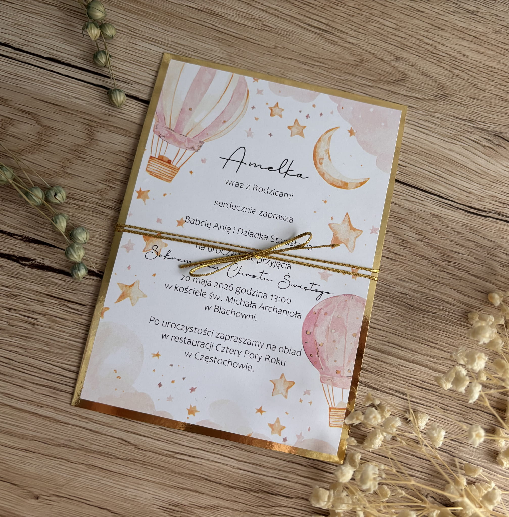 Minimalne zamówienie to 5 sztuk. Nie wykonujemy pojedynczych zaproszeń.