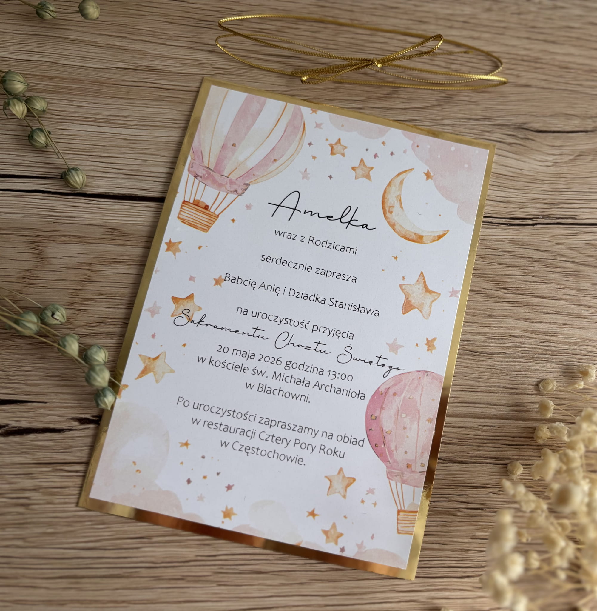 Zaproszenie na chrzest dla dziewczynki