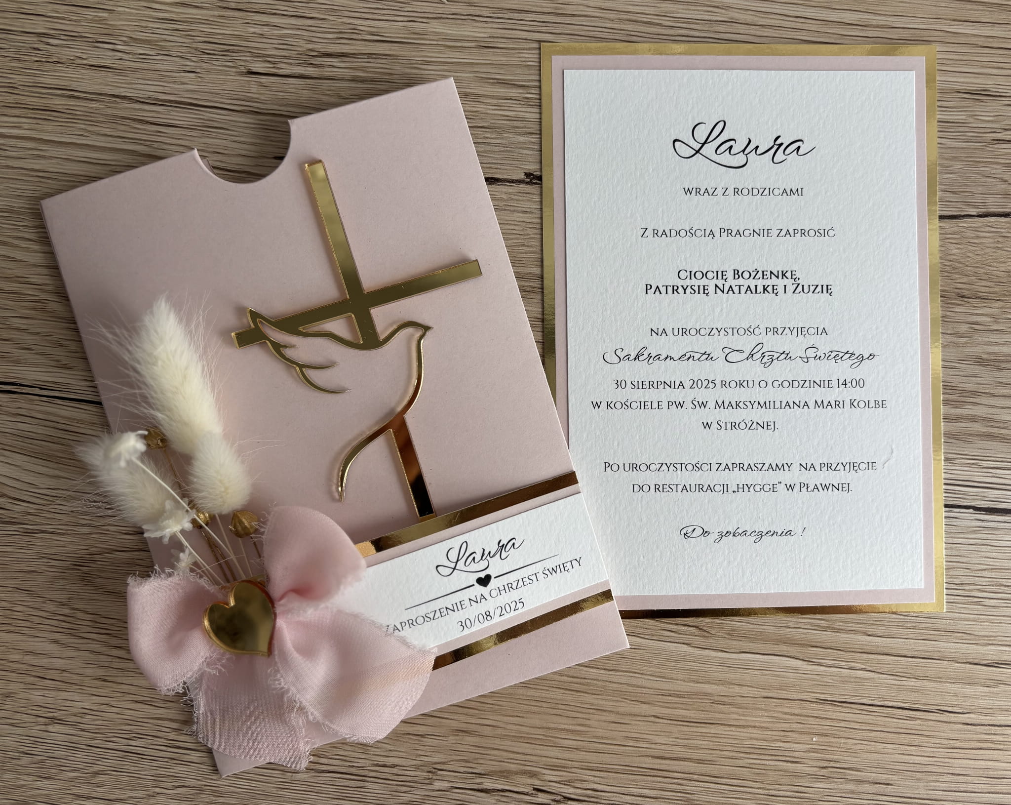 Szukasz wyjątkowego zaproszenia, które podkreśli duchowy wymiar Chrztu Świętego i zachwyci gości już od pierwszego spojrzenia? Zaproszenie to połączenie delikatności, elegancji i rękodzieła najwyższej jakości.