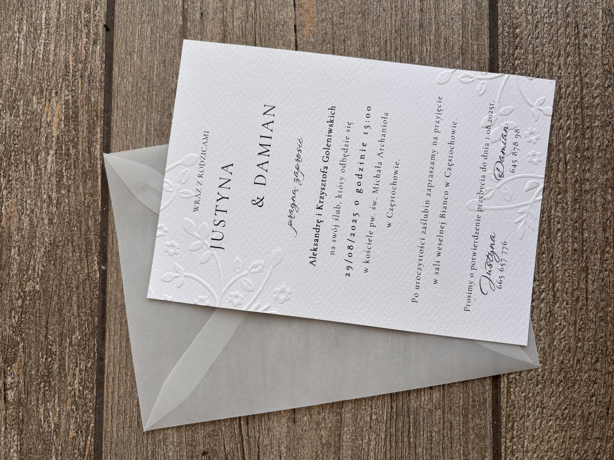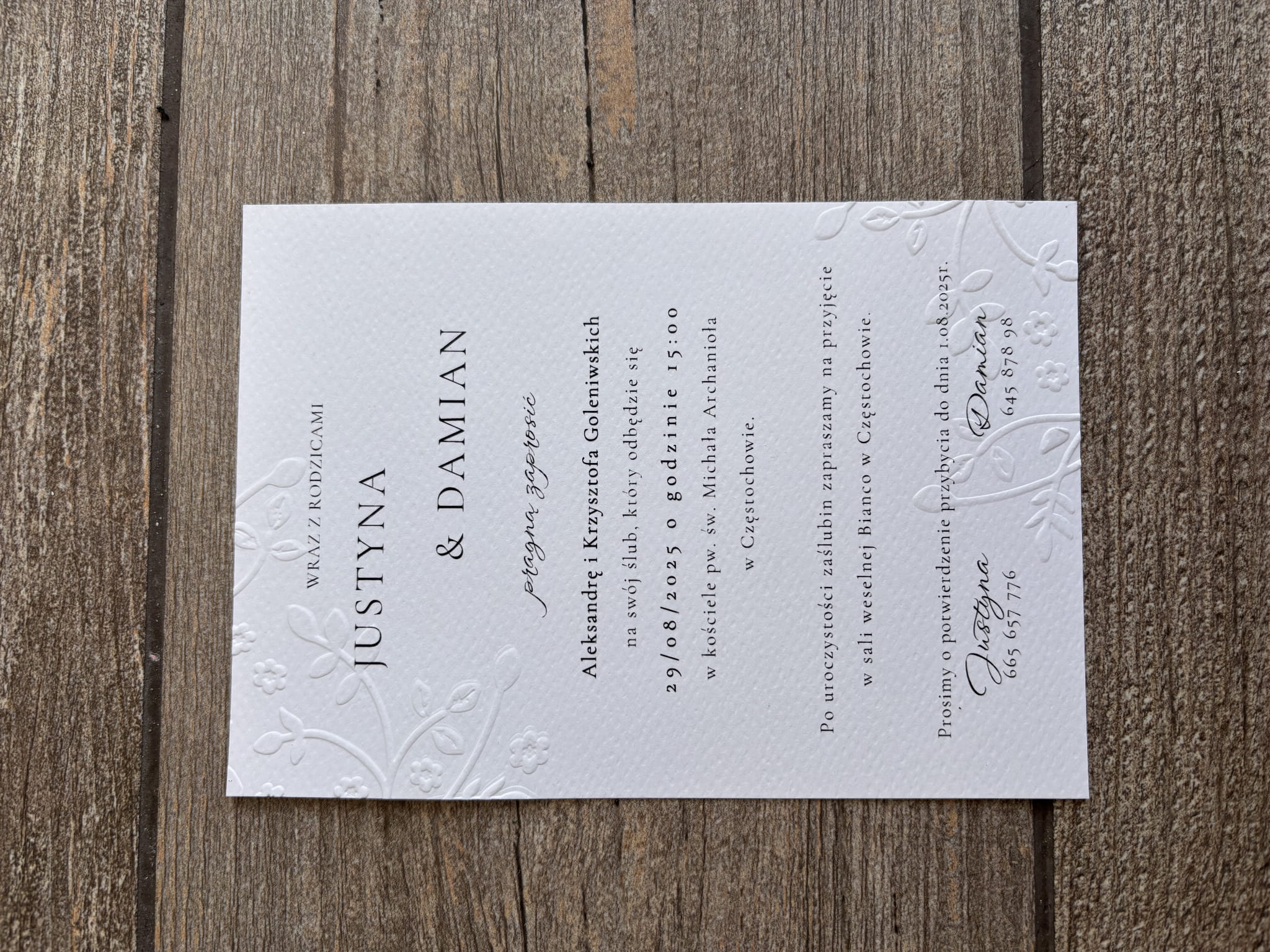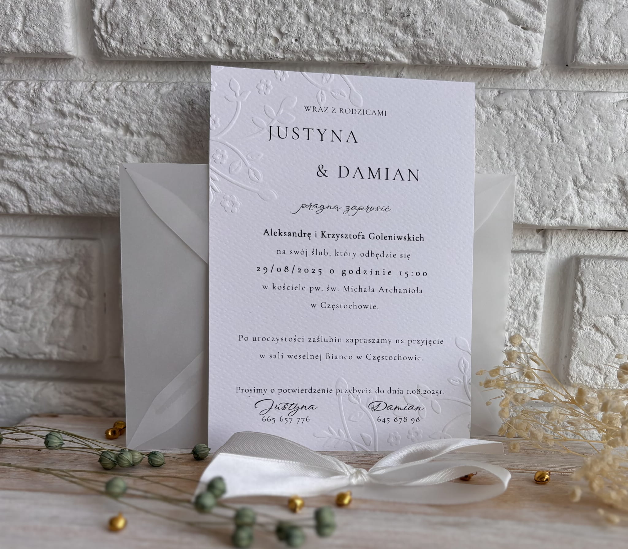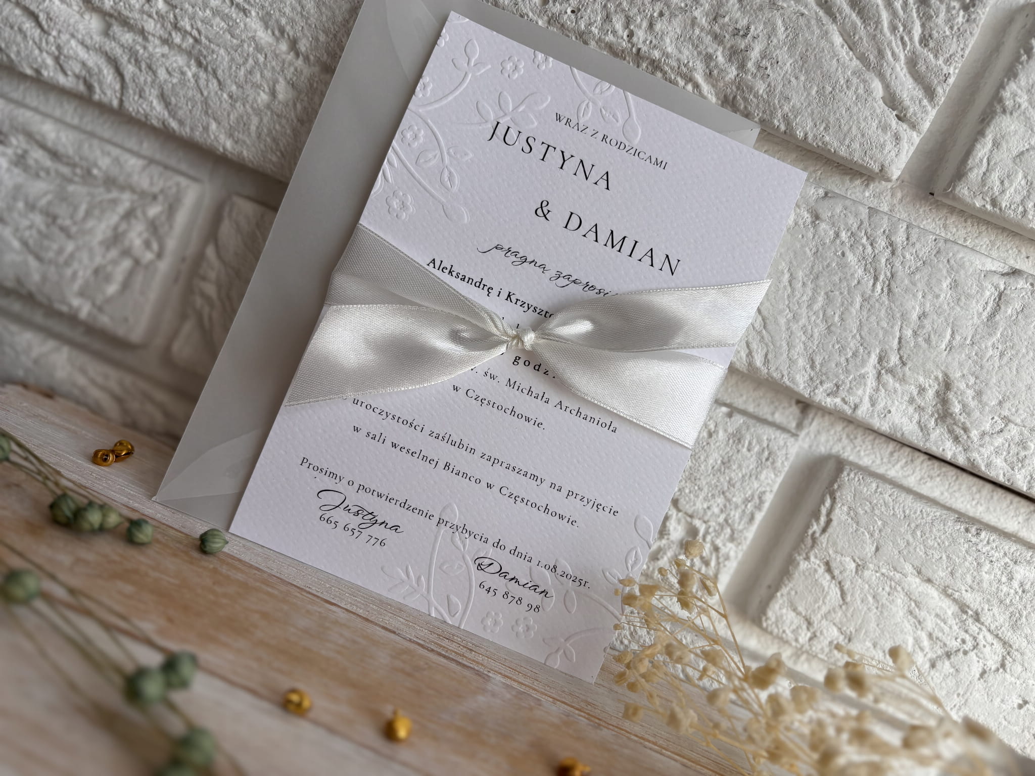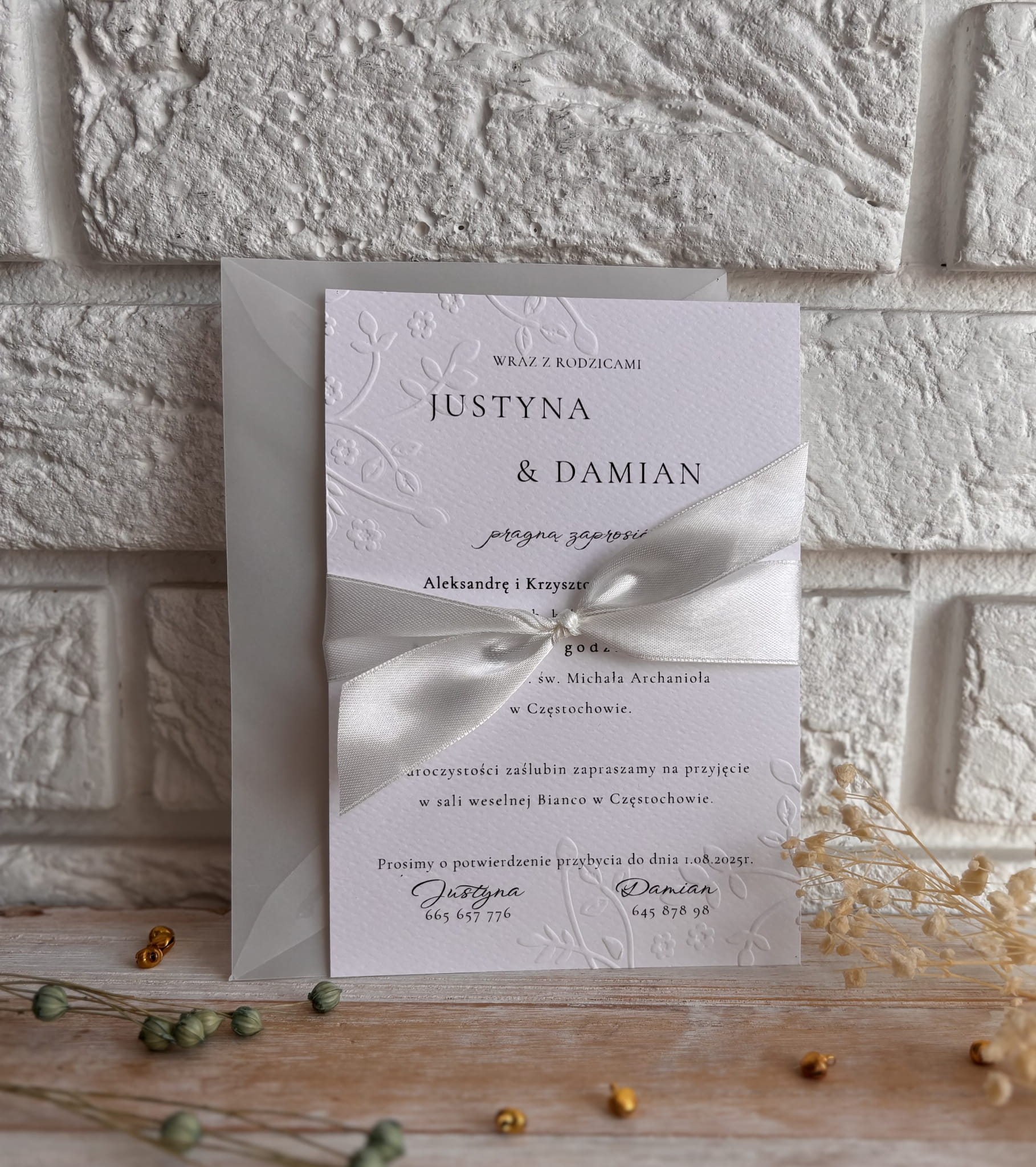 Zaproszenie ślubne - wytłaczane z satynową wstążką