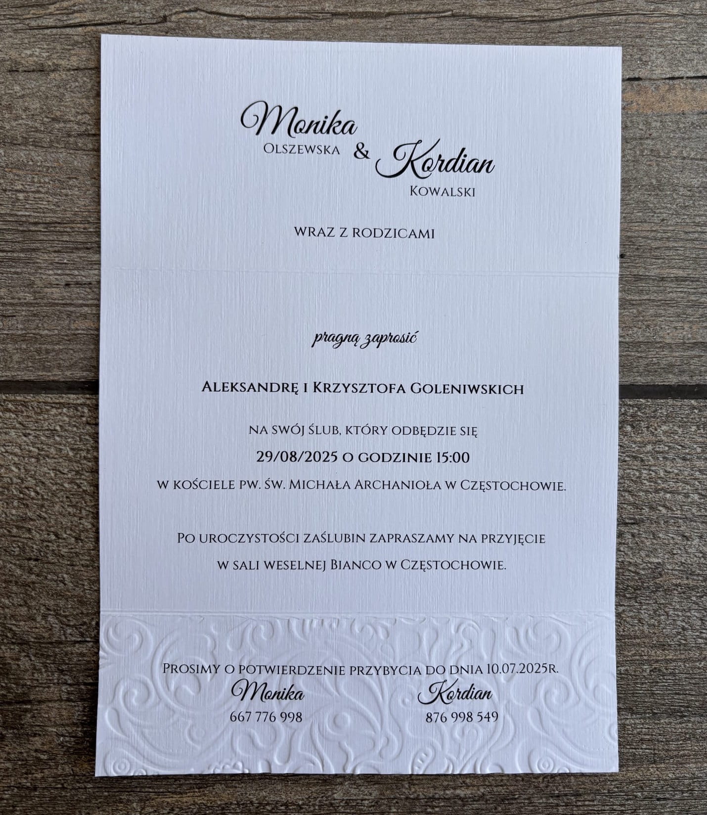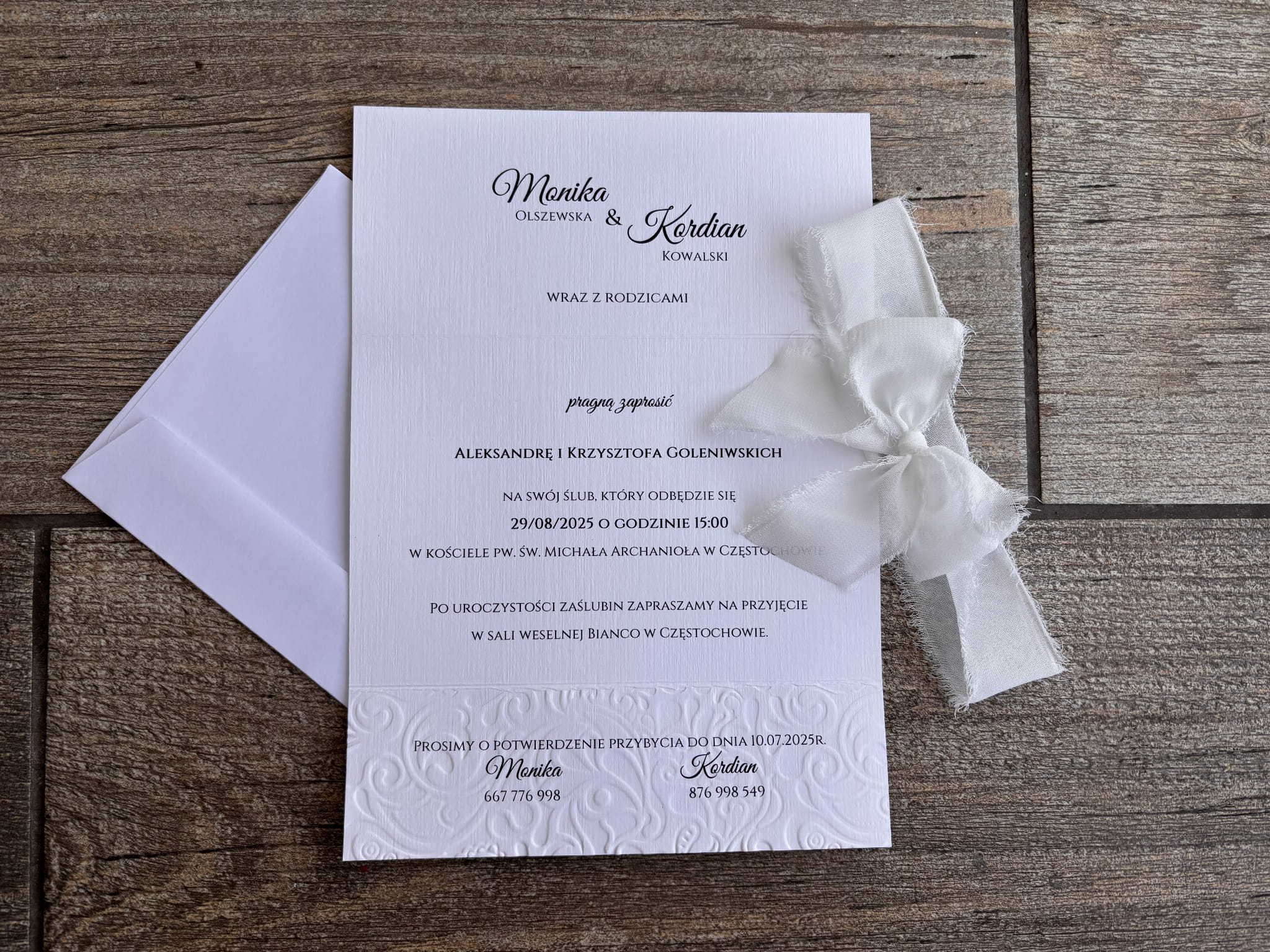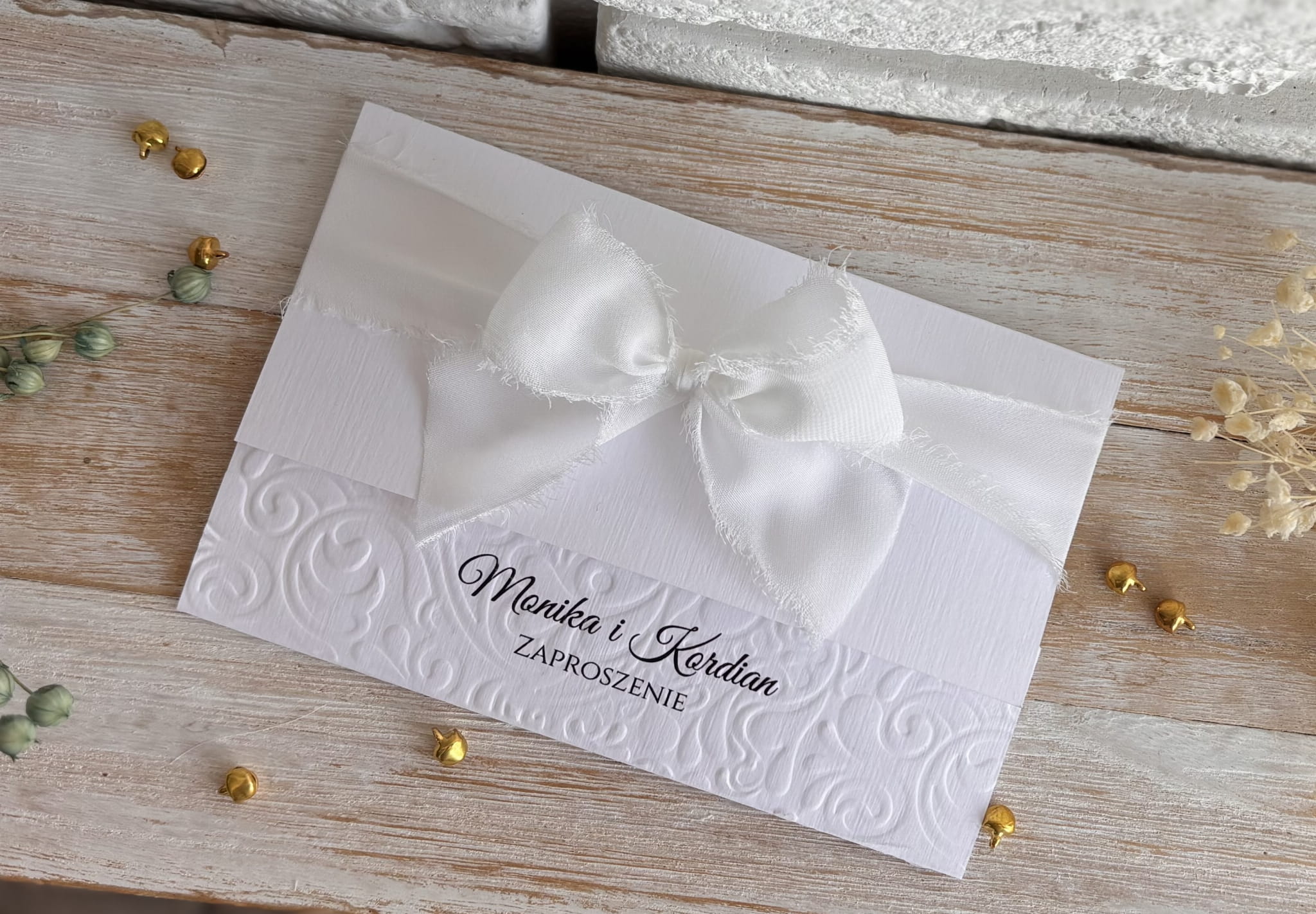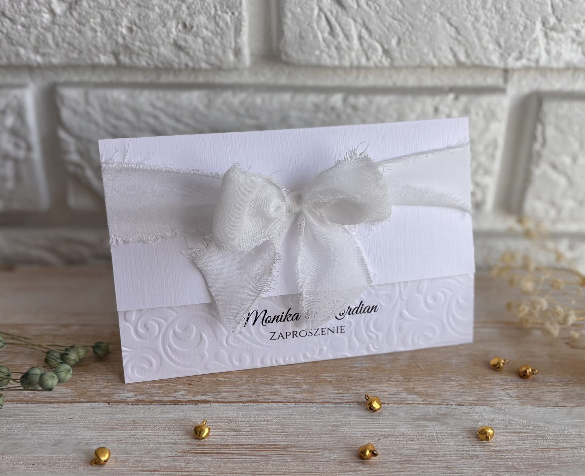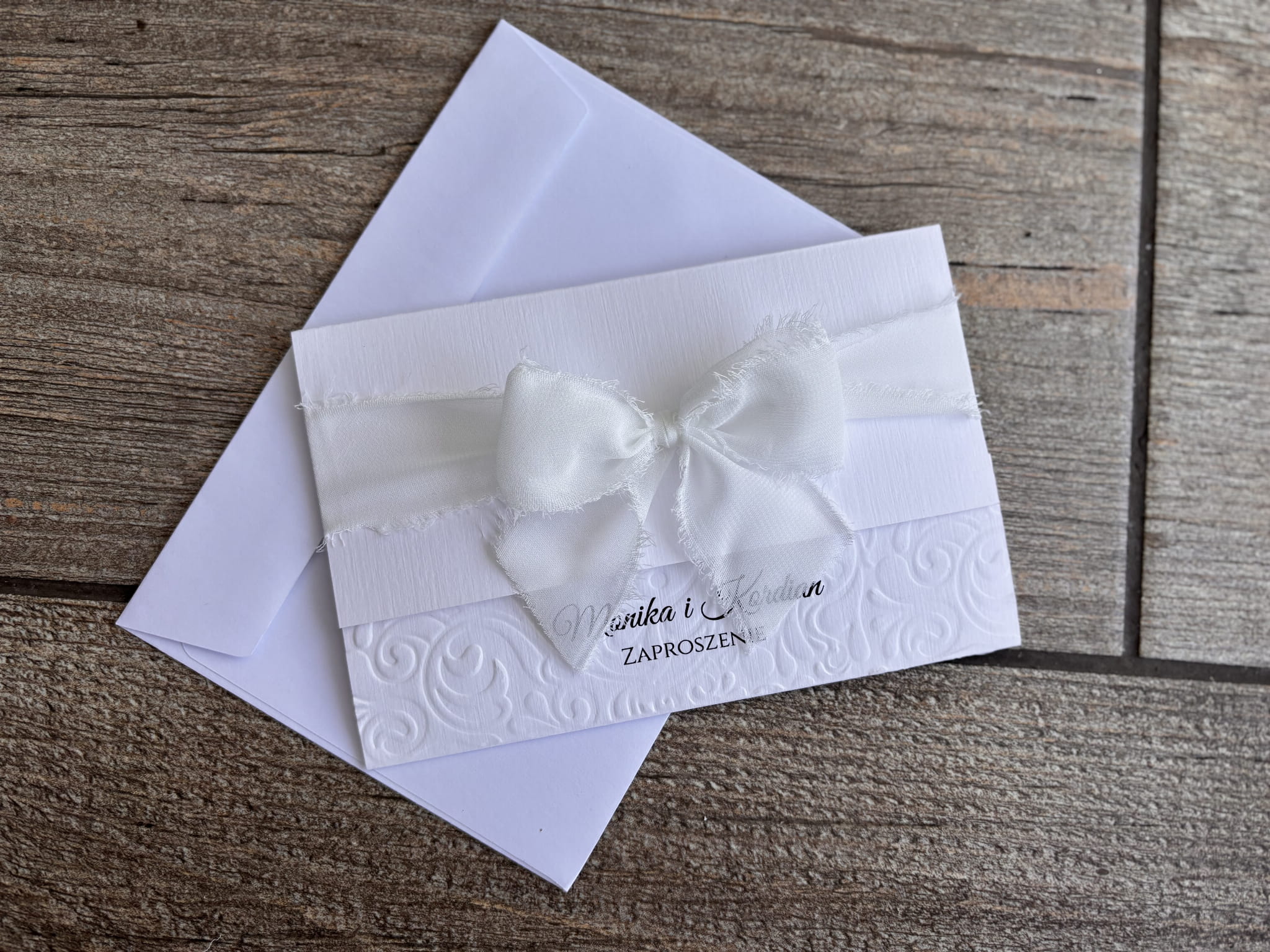 Zaproszenie ślubne - wytłaczane z szyfonową kokardką